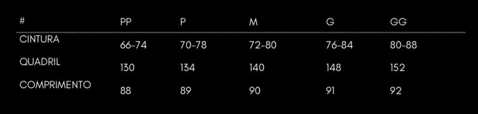 movimento. Possui pala na cintura, bolsos laterais e elástico nas costas para melhor
