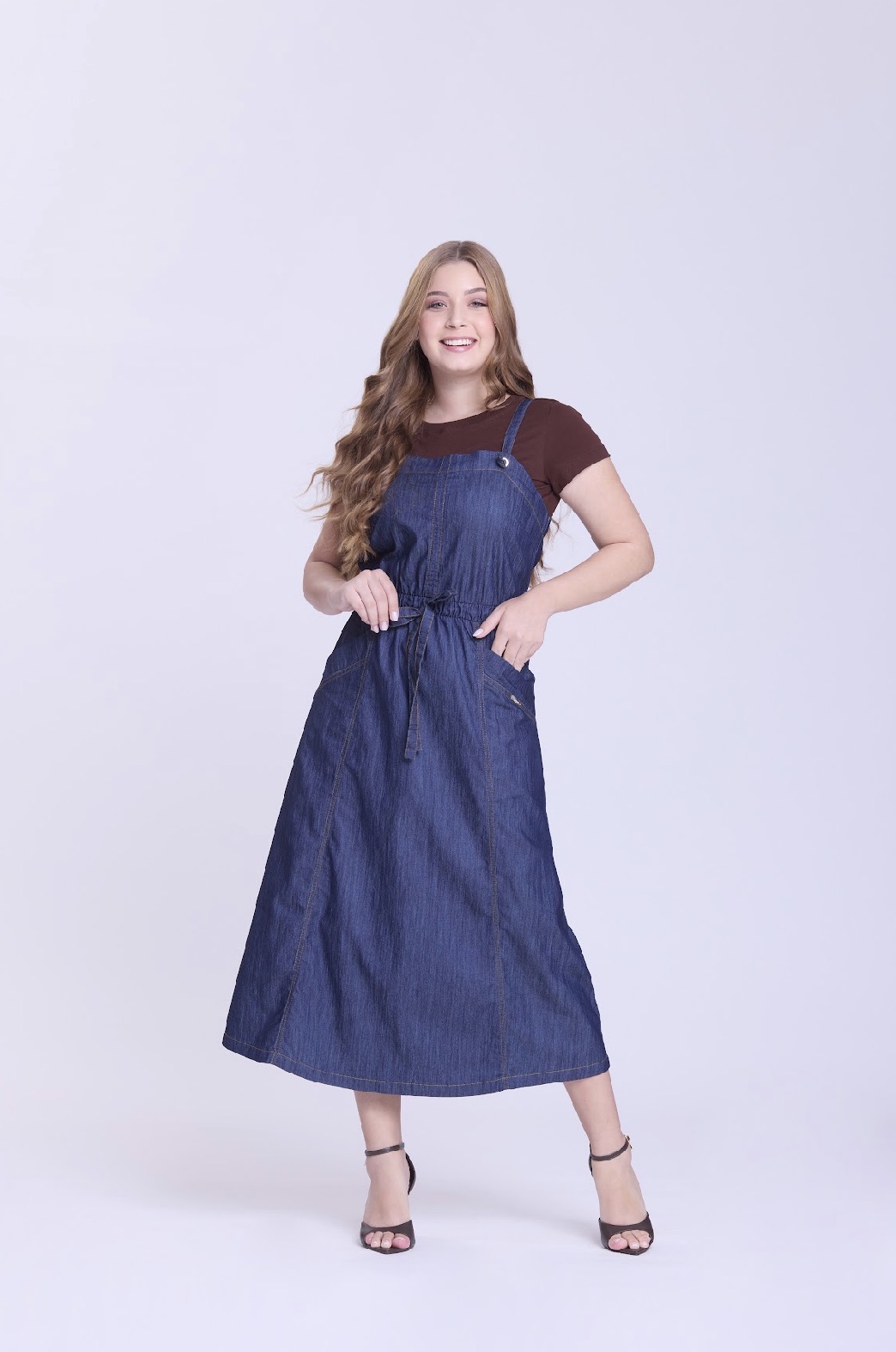 A salopete Jéssica foi confeccionada em jeans. Esse modelo apresenta decote reto, alças reguláveis, detalhe em ilhós, bolsos funcionais, elástico interno na cintura e viés e shape levemente em A. Essa salopete tem um ótimo caimento e leveza uma ótima escolha para que ama um jeans moderno.
