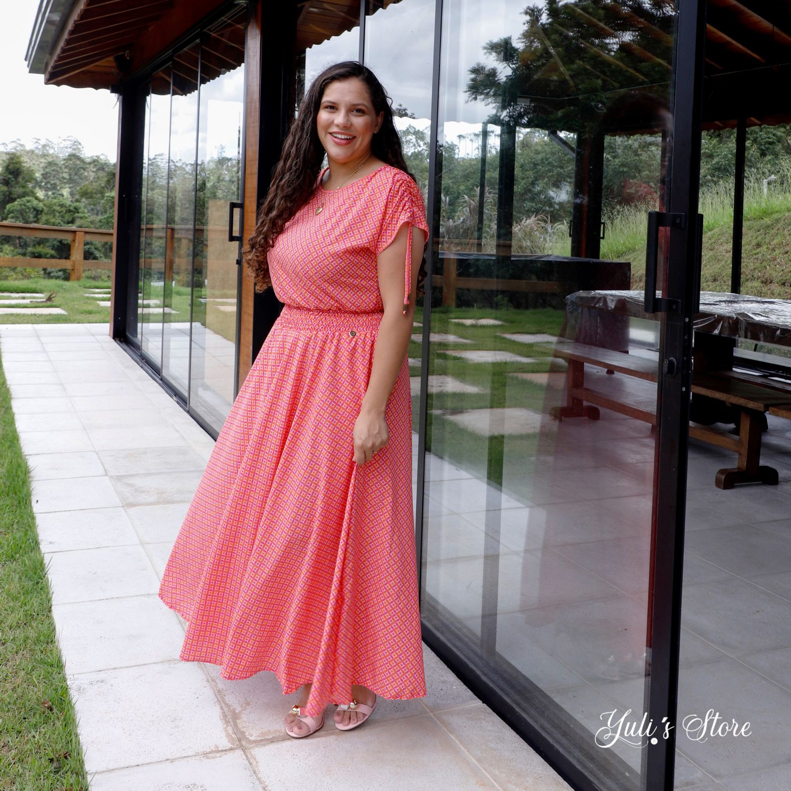 Vestido em Crepe com Toque de Seda Irecê Rosa Valentina Sirrah