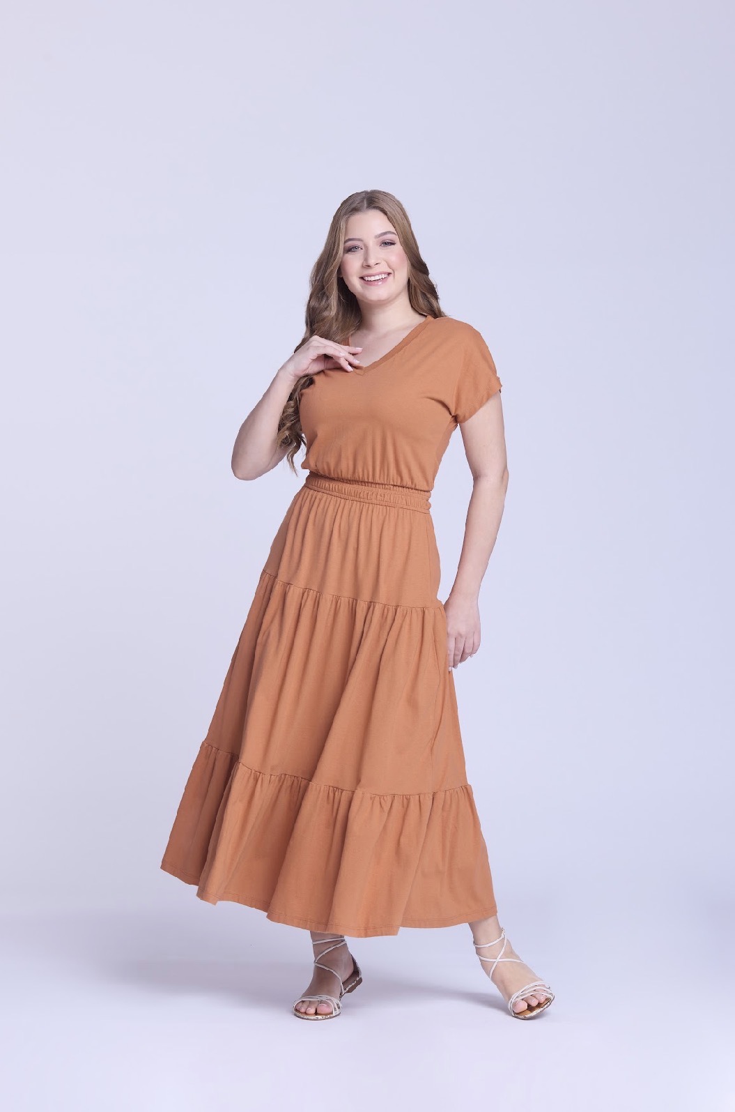 O vestido Flávia foi confeccionado em malha de algodão. O modelo apresenta decote V, suas mangas são curtas e deslocadas, elástico interno na cintura, o shape é soltinho e sem forro. O vestido Flávia traz muito conforto e modernidade, uma ótima escolha para compor looks casuais