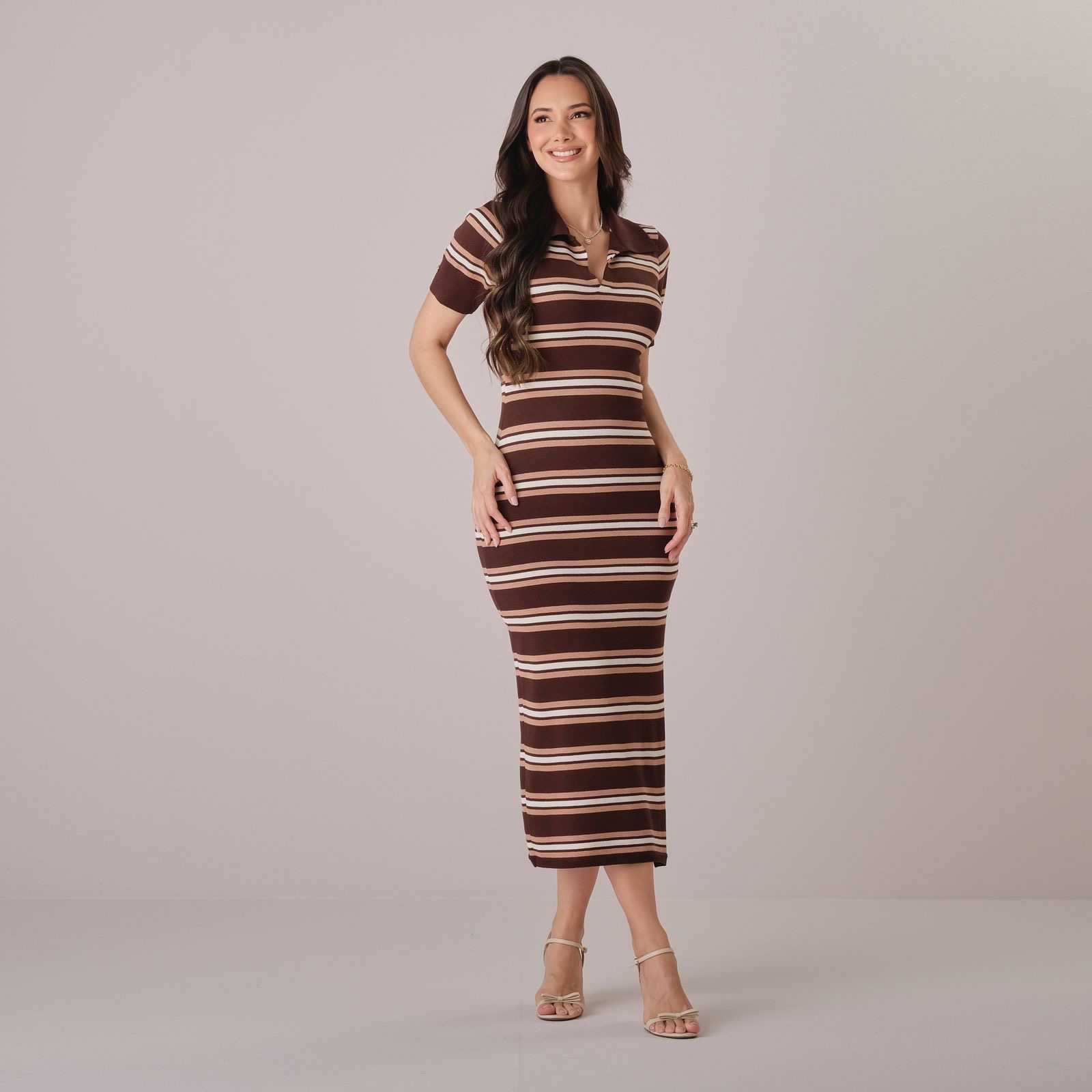 As listras trazem personalidade ao look, criando uma proposta sofisticada e versátil.