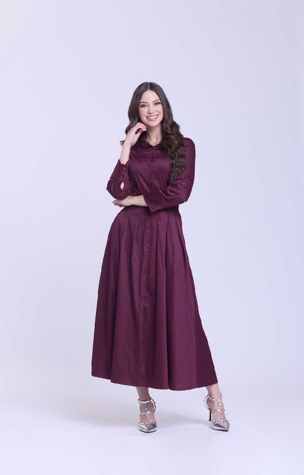 O vestido Cristiane foi confeccionado em tecido plano tricoline. O modelo apresenta decote com gola, fechamento frontal por botões, suas mangas são longas com martingale, os bolsos são funcionais, há elástico interno na cintura costas, detalhe em pregas e shape levemente godê. Esse vestido possui um ótimo caimento e leveza, sendo uma ótima escolha para ocasiões casuais.
