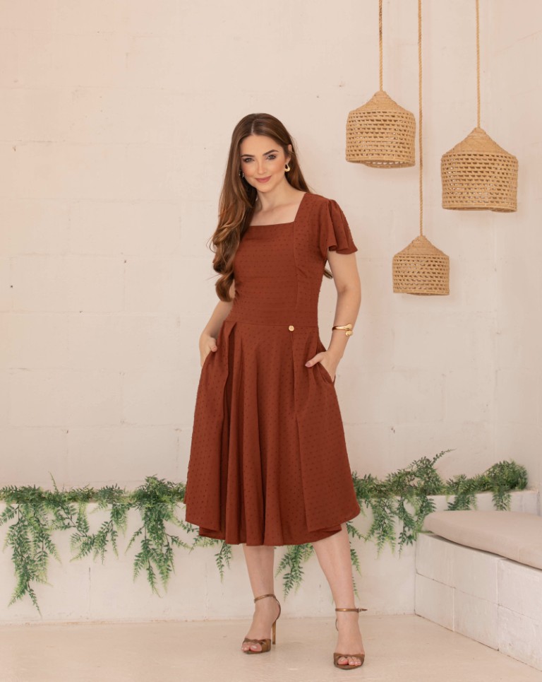 Vestido Em Viscose Pipoquinha Estiva Marrom Valentina Sirrah