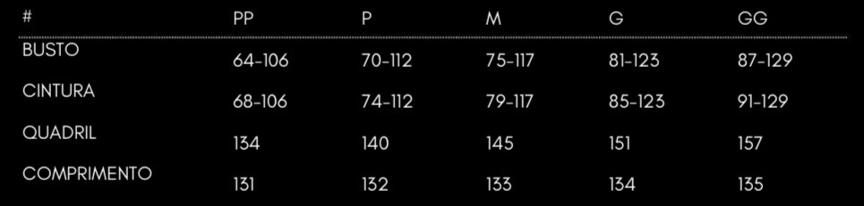 corpo, que se ajusta perfeitamente. Conta com elástico nos ombros, permitindo